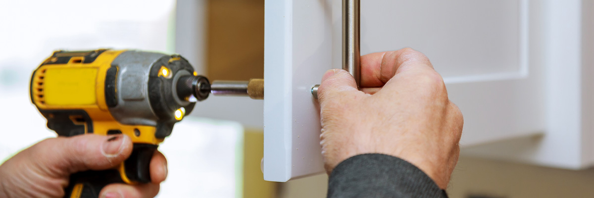- Use a drill or screwdriver to remove the screws on the inside of the cabinet or drawer.