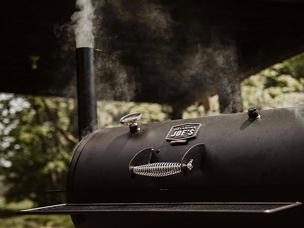 - Smokers: A dedicated smoker makes a great companion for your existing grill. While you can set up most grills as smokers with the aid of a pan of soaked wood chips (check out this helpful How To for this method from Weber), a dedicated smoker is designed to use smoke for an indirect heat source as its primary function. Smoking meat happens at low temperatures over longer periods of time than direct grilling. While a grilled piece of chicken may take minutes, smoking a whole chicken may take hours (but the wait will be worth it!) Typically, smokers are cylinder, barrel, or rectangular shaped, and offer various levels for placing or hanging meat, sometimes using a water pan (to regulate heat). Smokers offer various fuel options such as hardwood charcoal, pellets, or even logs for big “whole hog” setups that may require serious muscle to move. Smokers can also come in “cabinet” style electrical options which will need a power source such as an outdoor outlet relatively nearby.